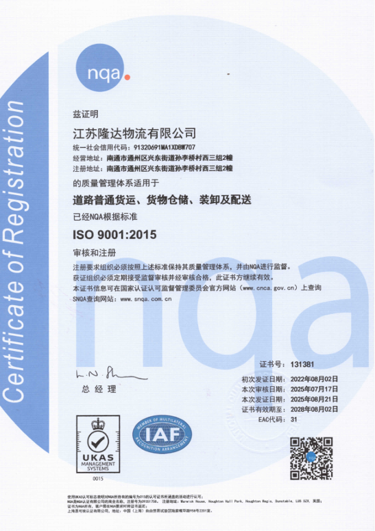 江苏隆达物流有限公司集物流专线等多功能于一体的专业南通物流公司、南通货运公司